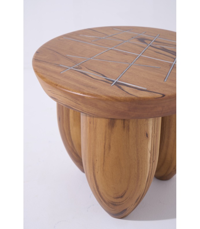 Maior e mais robusto, o Banco Zeca assume papel de destaque no ambiente, reforçando a presença da madeira maciça.