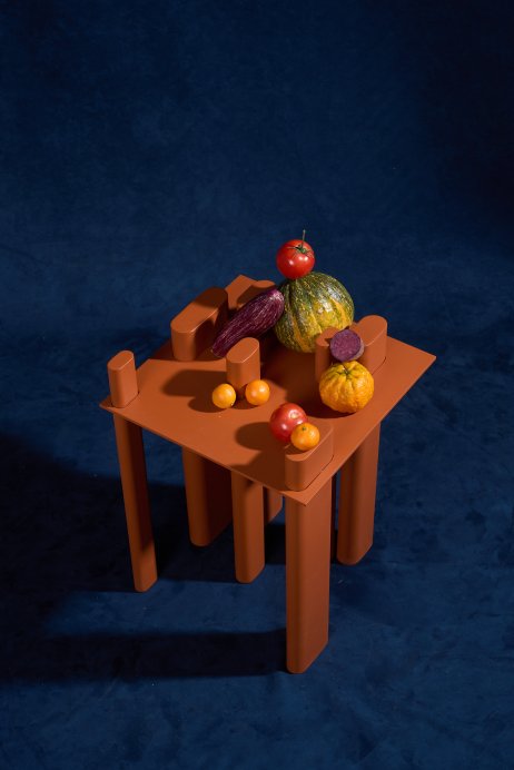 A Coleção Elvira explora superfícies, cores profundas e volumes precisos. Mesas que combinam robustez e leveza visual.