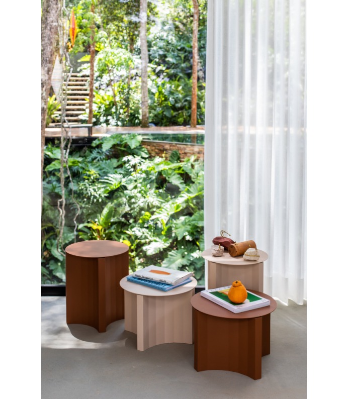 A Coleção Pampulha, dos designers Guillermo Salhón e Ana Sosa, do Estúdio Diário, estúdio estabelecido em Montevidéu, Uruguai marca presença com objetos funcionais em aço dobrado, que se redobram em formas livres e marcantes