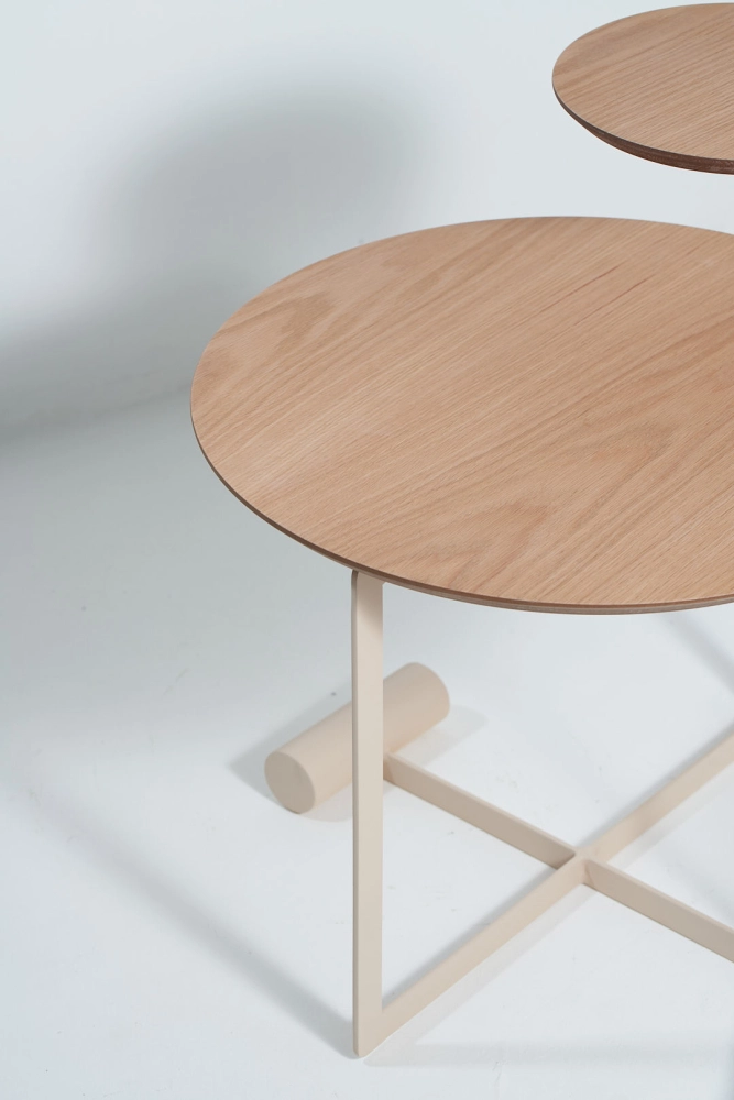 mesa lateral Sense, em versão redonda ou retangular, cria, com suas retas
