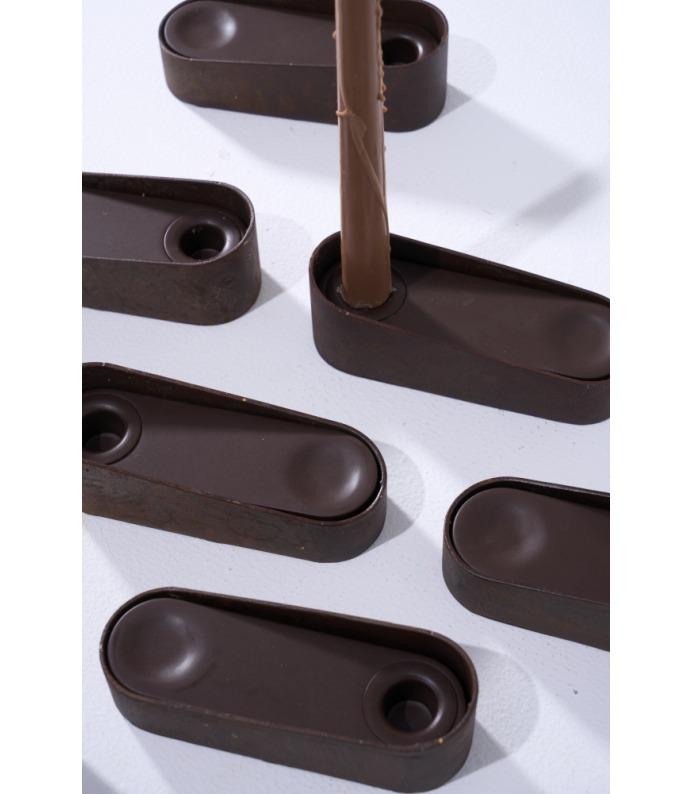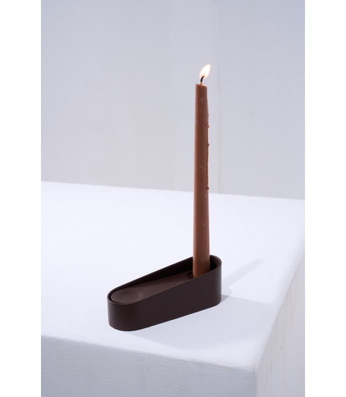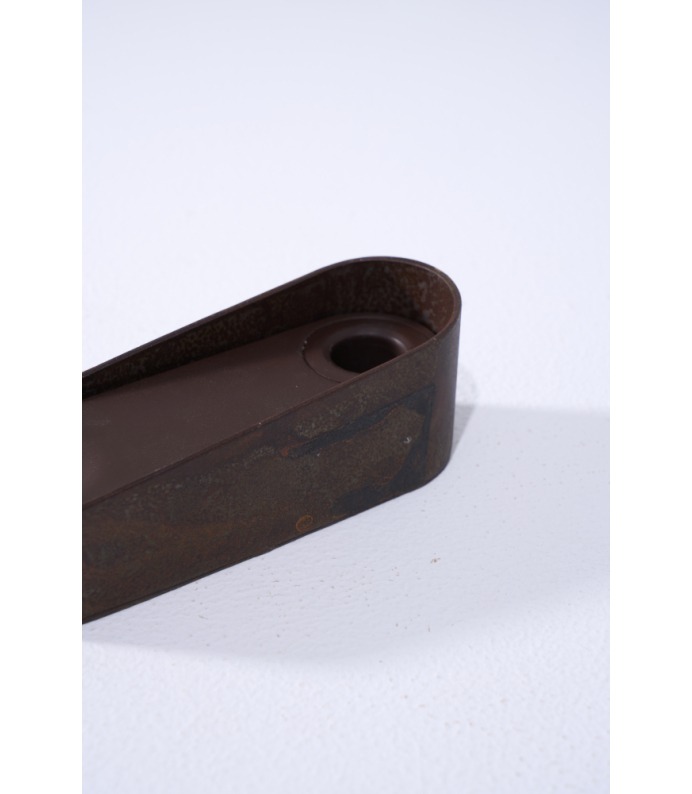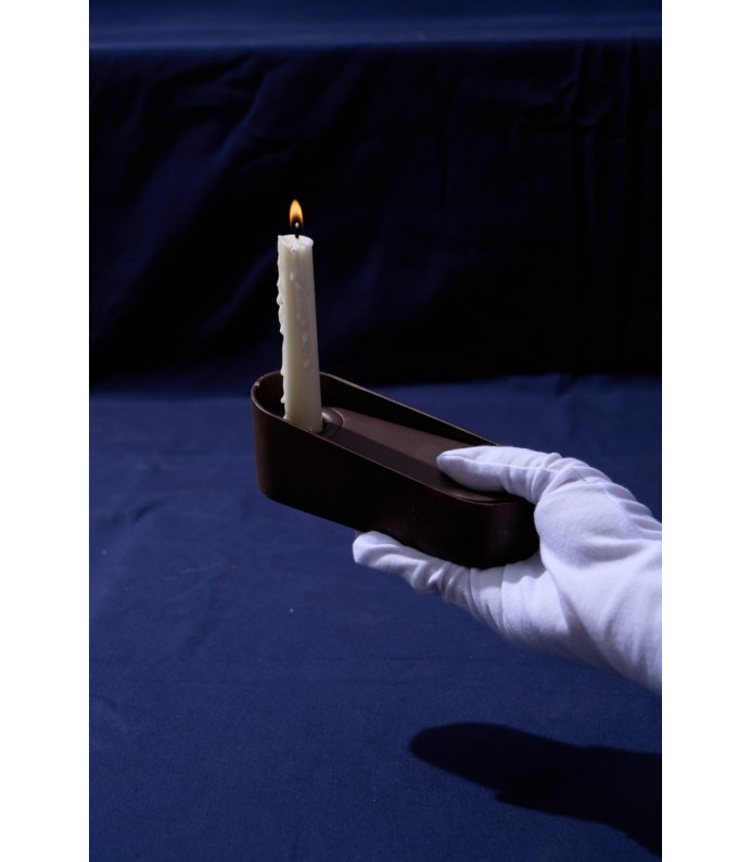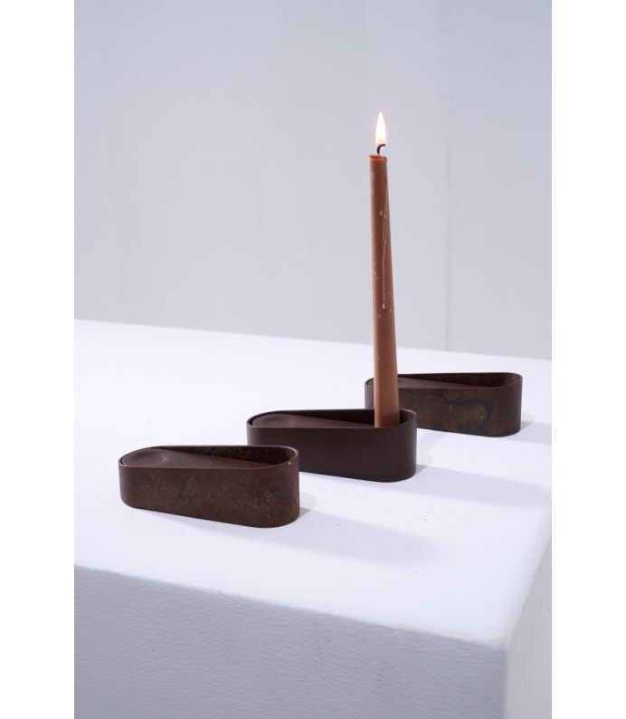 O Castiçal Vera traduz a força do aço em um gesto simples. A chama, frágil e efêmera, encontra suporte em uma base sólida e marcada pelo tempo. O resultado é um objeto que equilibra permanência e transitoriedade, luz e matéria.