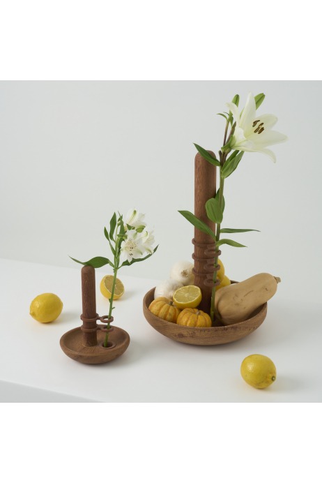 Composta por potes com múltiplas funções e um suporte para flores, a Coleção trás, na simplicidade de suas formas, a inspiração nos frutos do cerrado, que ascende galhos magros em veredas improváveis. São invólucros que protegem as sementes, poupam a vida e se destacam. Altivez merecedora da nobreza do dourado. Elevam as virtudes de seus veios pulsantes.