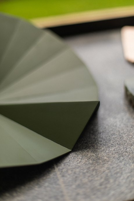 Em movimento infinito a proteção se encontra ao ouro, a rica referência estética asiática. A ideia de controlar o equilíbrio pensa a busca pela perfeição inexistente. A irregularidade em natureza assimétrica é sim a beleza natural, valiosa.