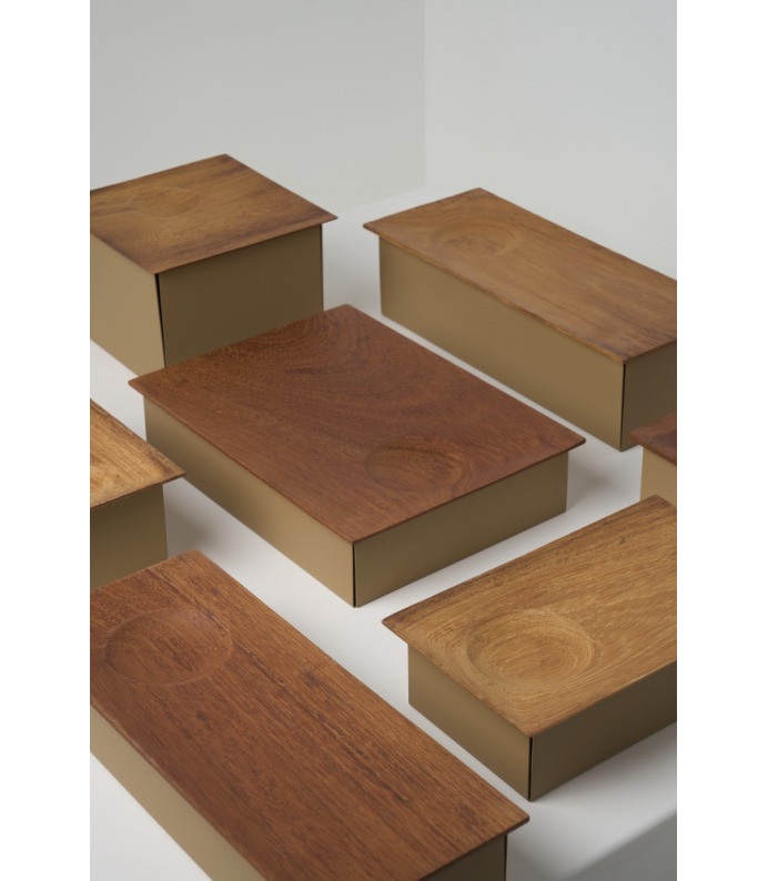 A Coleção DPT020 organiza o espaço com precisão. Centros de mesa e potes exploram combinações entre madeira e aço, criando peças funcionais e gráficas. As diferentes formas e proporções permitem múltiplas aplicações, da mesa posta à organização cotidiana, sempre com linguagem contemporânea.