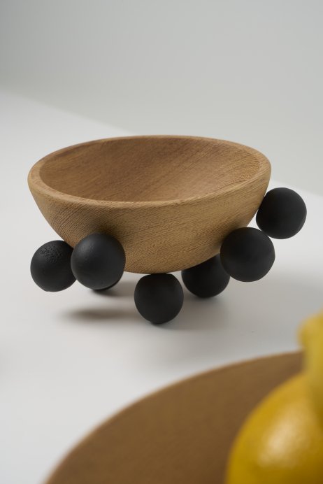 A Coleção DPT030 explora o jogo entre volumes e pequenos detalhes. Bowls, vasos e luminárias em madeira maciça recebem elementos circulares que funcionam como pontos de contraste visual. A coleção mantém unidade estética, permitindo composições completas em diferentes categorias de produto.