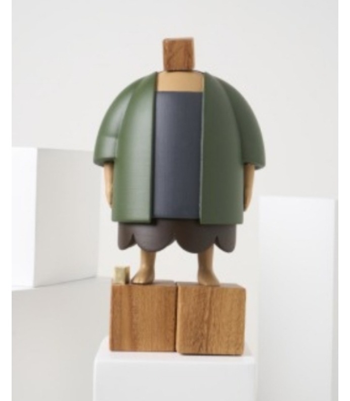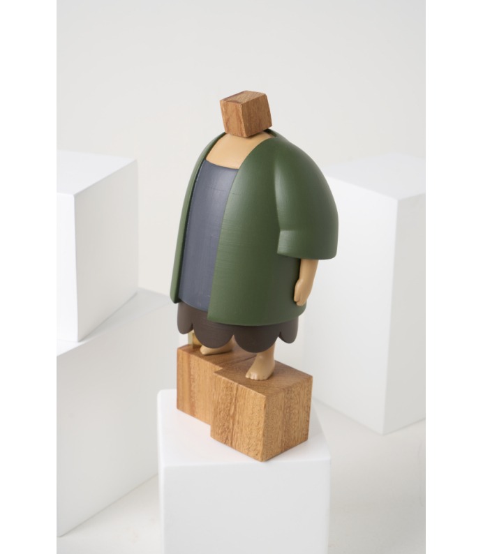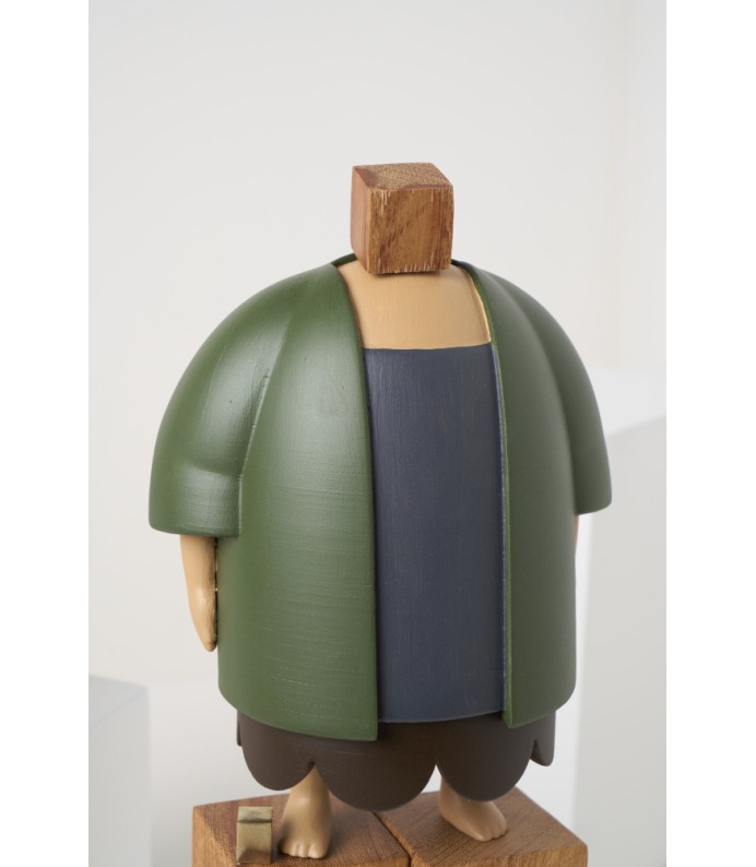 Com formas simplificadas e proporções que transbordam ternura, cada peça traduz uma narrativa: a do trabalhador que guarda, sob o terno, um coração leve; a de quem percorre as ruas do dia a dia com pés descalços e alma suave.